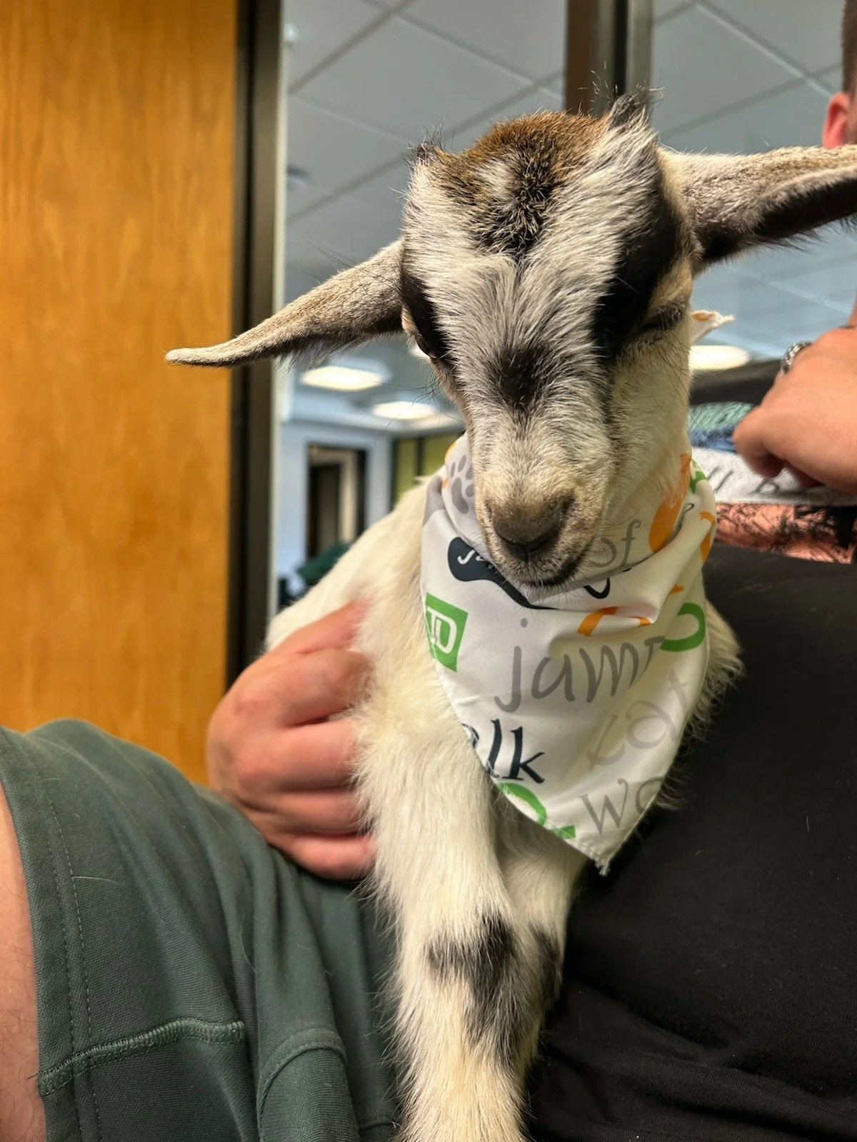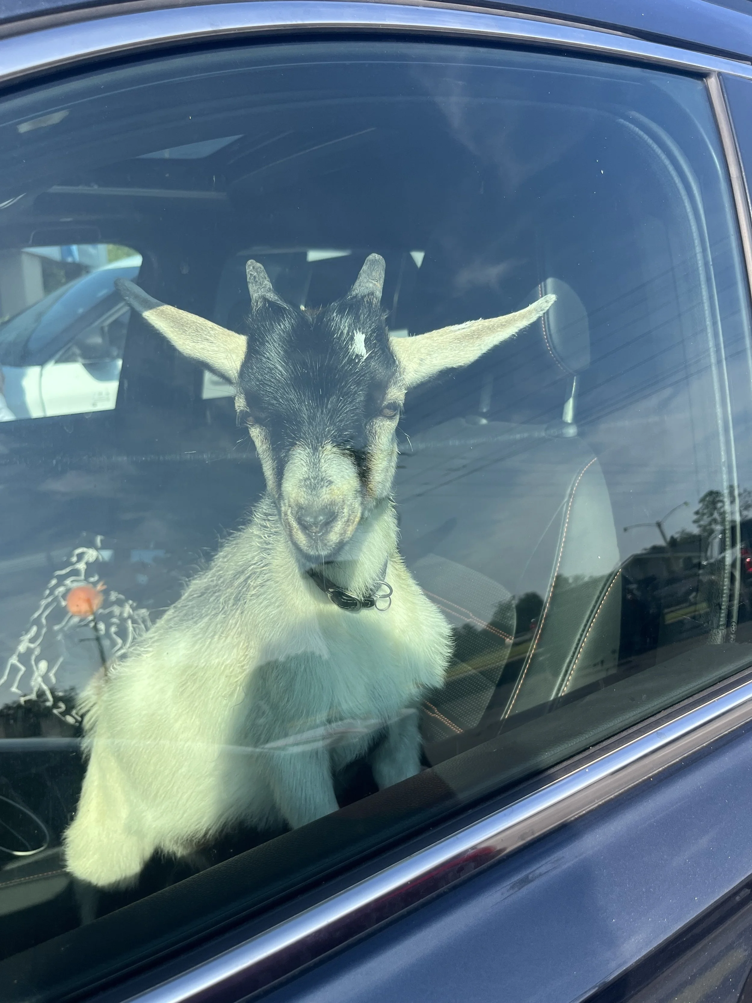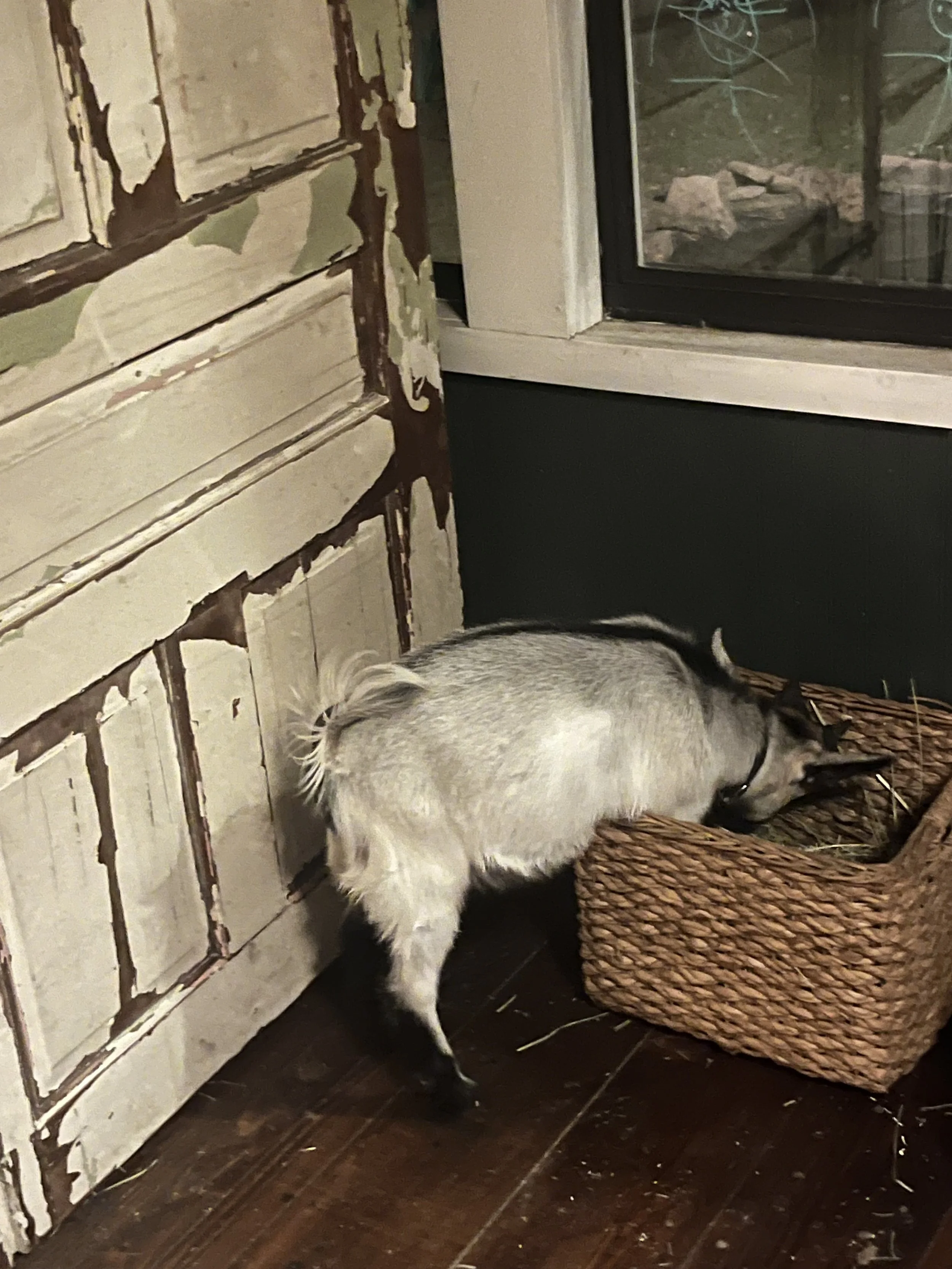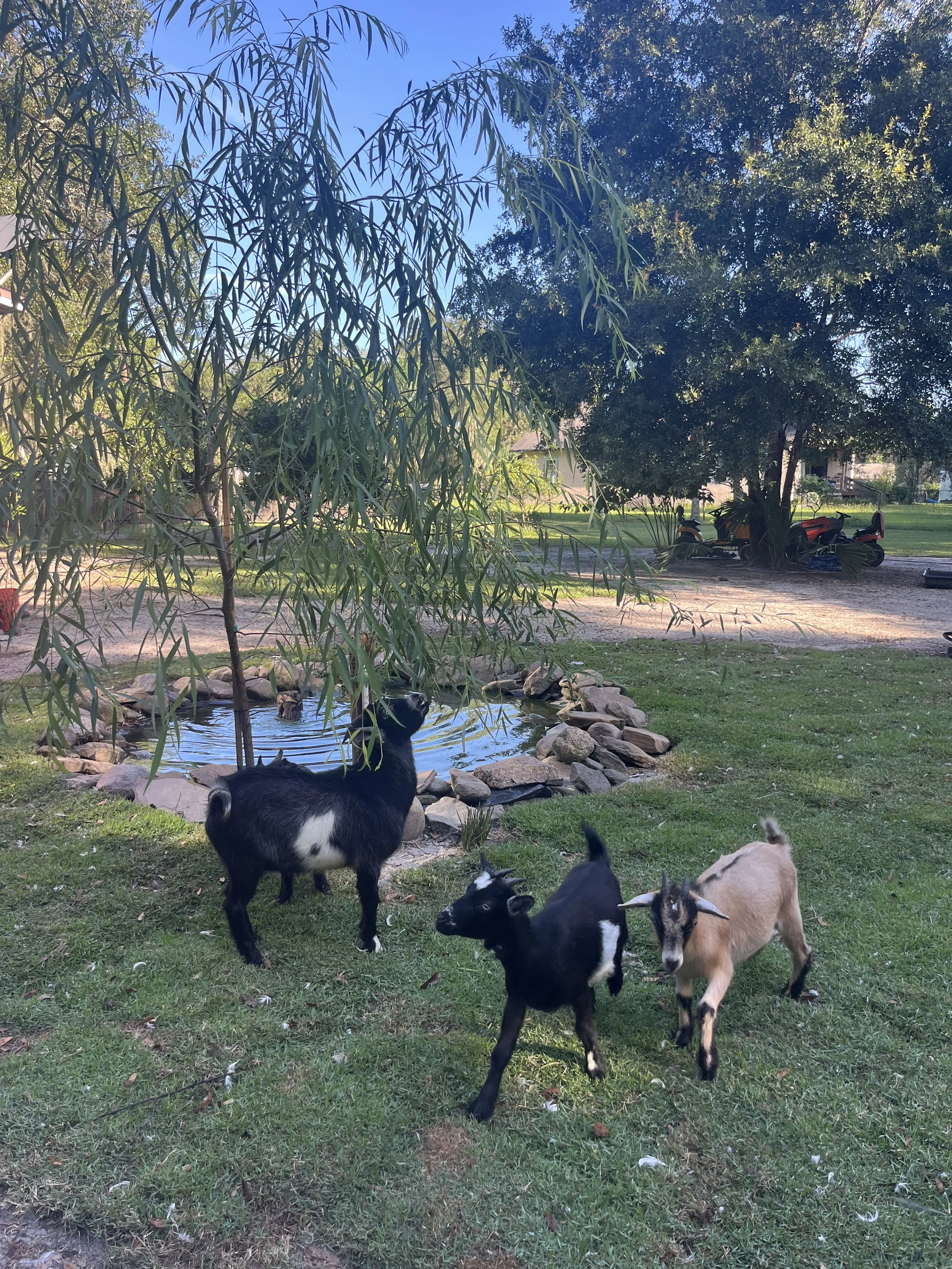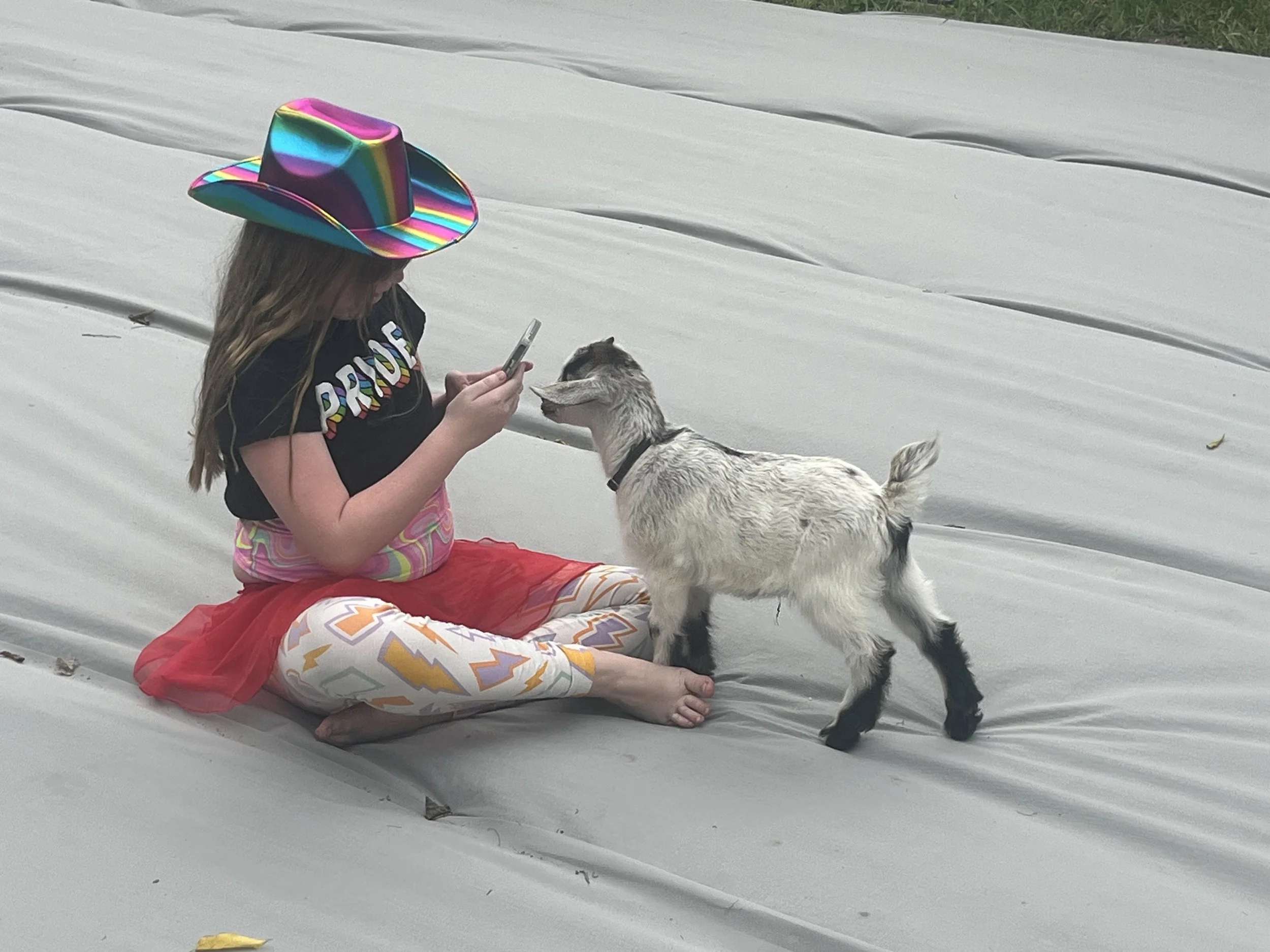 Petey’s Beer & Wine Garden is named after our very first goat - Petey, a sweet white Nigerian Dwarf kid. We remember picking him up in January 2025 from a small farm outside of Bunnell, FL - he was so cute and small. It was cold outside, so we wrapped him up in a little blanket for our ride home.