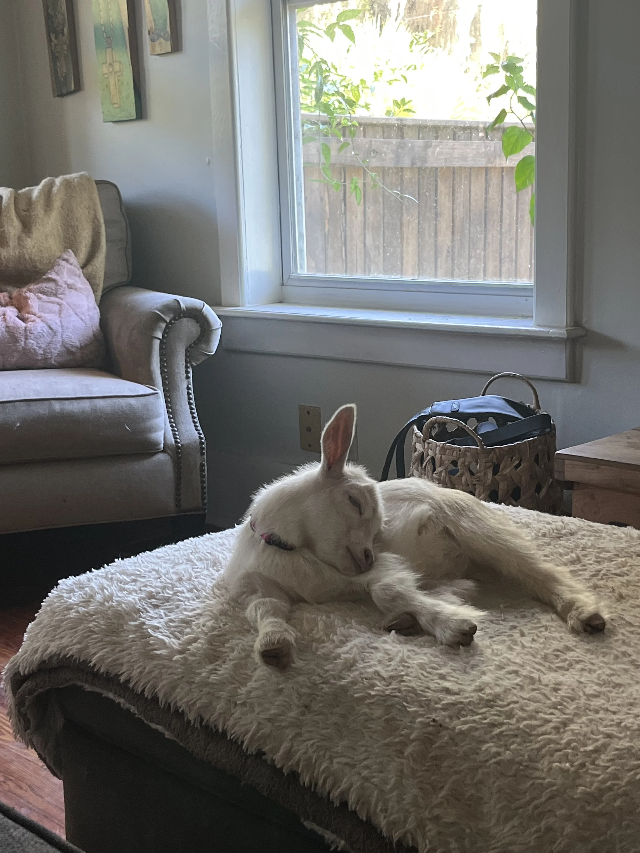 We had never spent time with a goat before and really had no idea what kind of impact he would have on our family farm full of chickens and ducks and geese. But Petey became an instant star - he was the center of our universe. Unfortunately, Petey passed away in June 2025, but the few months he was part of our family changed us forever.